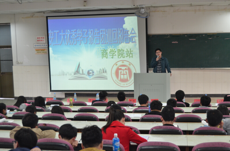 4月17日下午,由校学工部主办的第二期优秀学子报告团巡回报告会商学院站在秀山校区举行。