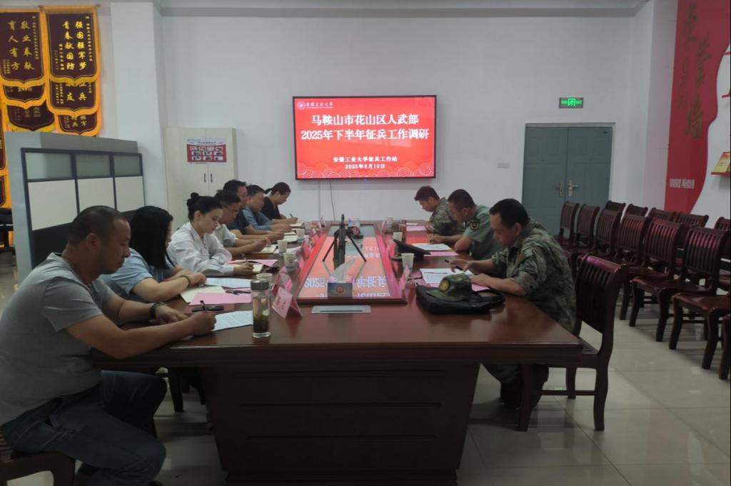 6月10日,马鞍山市花山区人武部部长张玉强一行来校调研2025年下半年征兵工作。校学生工作部(就业指导中心)部长、征兵工作站副站长赵龙出席交流会,机械工程学院、计算机学院、商学院、微数学院等学院负责人,校征兵工作站、花山区人武部工作人员参加会议。